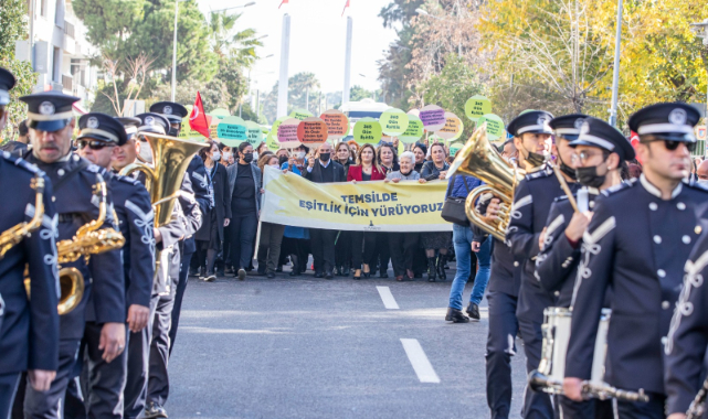 Kutlamalar kapsamında Kültürpark Lozan kapısından Cumhuriyet Meydanı’na doğru yürüyüş yapıldı. “Temsilde Eşitlik İçin Yürüyoruz” sloganıyla yapılan yürüyüşün ardından Başkan Tunç Soyer Cumhuriyet Meydanı'nda yaptığı konuşmada, “İzmir bir kadın şehri, kadınların çok daha fazla temsil edilmesi lazım. Bir kentte kadınlar söz sahibi oldukça, o kentin medenileştiğini biliyorum. Siz geride durdukça bu kent çoraklaşacak, yoksullaşacak. Cesur kadınlarsınız, yürüyün. Ben yanınızda duracağım” dedi.