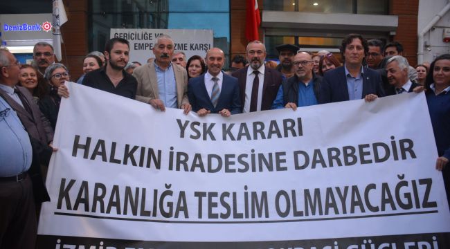 İzmir Büyükşehir Belediye Başkanı Tunç Soyer, “böyle hukuk dışı bir karar karşısında Türkiye’de en hızlı ve en doğru refleksi veren kurum olan İzmir Barosu’nu kutluyorum” diyerek başladığı konuşmasında 31 Mart’ın demokrasinin, demokrasi dışı güçleri zorlayabileceği, geriletebileceğinin göstergesi olduğunu ve bir umut doğurduğunu söyledi. Soyer, “şimdi bu umudu söndürmek istiyorlar. Ama bu sönmez. Demokrasi, genişleyerek, yayılarak yolunu açmaya devam edecek ve bu topraklarda her şey çok daha güzel olacak” dedi. Demokrasi savunucularının, demokrasiye inançlı olanların sıkı bir dayanışma içinde olmak zorunda olduğunu ifade eden Tunç Soyer, “dönem tam da böyle bir dönem. Bundan sonra bizim aramızdan su sızmasın diliyorum. Çok daha güçlü ve tek yumruk olmak zorundayız ve demokrasiyi sonuna kadar savunmak zorundayız” dedi.