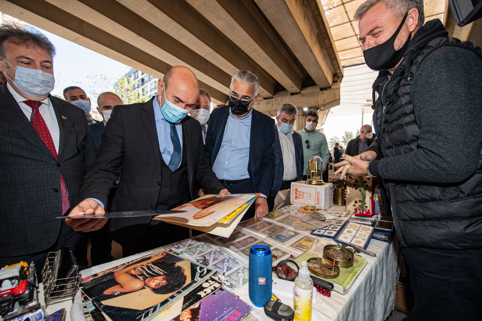 Dr. Mustafa İduğ iki yıldır kapalı olan pazar yerinin artık haftanın beş günü açık olduğunu ve kent ekonomisine katkı sağladığını söyleyerek Başkan Tunç Soyer’e desteği için teşekkür etti. Başkan Tunç Soyer, “Esnafa destek olmak için elimizden gelen ne varsa yapmaya hazırız. Onların yüzü güldüğü zaman memleketin huzuru, sağlığı yerine geliyor. Elimizden geldiği kadar destek olmaya ve sahip çıkmaya devam edeceğiz. Buradaki ürünlerin hepsi el emeği göz nuru. Yüzlerce yıl öncesine de giden var, ince ince titizlikle toplanmış objeler de. Her birinin başka bir anısı bulunuyor. O nedenle ikinci el pazarı çok kıymeti. Biz de her zaman destek çıkmaya devam edeceğiz” diye konuştu.