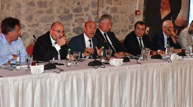 BUGÜNKÜ SENKRONİZASYON TOPLANTISIBaşkan Soyer, buluşma amacının 2019-2024 İzmir Stratejik Planı olduğunu söyledi. Soyer, “Bugünkü toplantımız bir senkronizasyon toplantısı. Stratejik plan her kurumun kendi başına yapması gereken plan ama İzmir denince hem büyük ilçeleri hem sivil toplum kuruluşları eğer aynı stratejik hedeflerle yol almazlarsa o vakit ortaya iyi bir şey çıkmıyor. Herkes iyi bir şey yaptığını düşünüyor ama ortaya bütüncül bir resim çıkmıyor. Yapmamız gereken şey bu plan çalışmalarının mümkün olduğu kadar birbiriyle uyumunu sağlamaktır. Tüm Türkiye’ye dünyaya karşı bir İzmir stratejik planı ortaya çıkarmak. Hepimizin uyacağı, takip edeceği ve parçası olacağı bir plandan bahsediyorum. Örneğin Bornova’nın stratejik planı ile İzmir Büyükşehir Belediyesi’nin stratejik planı uyumlu değilse ne ortak yatırım yapmak ne ortak bir hikaye ortaya koymak mümkün olmaz. Mutlaka bunları senkronize etmeye çalışacağız" diye konuştu.EYLÜL VE EKİM AYLARINDAKİ MECLİSLERDE KARARLAR ALINACAKSoyer, Eylül ve Ekim aylarındaki meclislerde Stratejik Plan ile ilgili kararlar alınacağını dile getirirken, “İki kısa sunumumuz olacak. Hem İzmir Büyükşehir Belediyesi’nin stratejik plan çalışmasıyla ilgili ana hatları ortaya koyacağız bir de aynı şekilde sürdürülebilir kentsel gelişim ağıyla ilgili bir sunum olacak. Ondan sonra da ilçe belediyelerimizin 10 dakikayı geçmeyecek kısa sunumlarını dinlemek istiyoruz. Herkes birbirinden haberdar olsun istiyoruz. Eylül ve Ekim aylarında yapılacak meclis toplantılarıyla bunlar karar altına alınsın. Birbirimizle buluşarak bu kararları alalım. Önümüzdeki 4 buçuk yılda da yol alalım istiyoruz” dedi. Başkan yardımcıları ve bürokratlarıyla toplantıya gelen ilçe belediye başkanlarının dosyalar hazırladıkları görüldü. Başkanların basına kapalı bölümde ilçeleriyle ilgili bilgilendirme yapacağı ve gereken proje ve yatırımlarda Büyükşehir Belediyesi’nden talepte bulunacakları belirtildi. 4 Eylül Çarşamba Günü (Yarın) ise diğer 18 ilçenin belediye başkanının katılacağı bir toplantı gerçekleşecek.