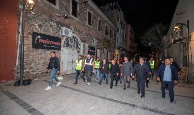 İzmir Büyükşehir Belediye Başkanı Tunç Soyer'in Konak ile Kadifekale arasındaki tarihi aksı canlandırma ve bölgenin cazibesini artırma hedefi doğrultusunda Kemeraltı'nda tarihi yatırımlar devam ediyor. Altyapı ve üstyapı çalışmalarının beraber ilerlediği Kemeraltı'nda atık su, yağmur suyu ve içme suyu hatları ile aydınlatma, gerilim hatları yenileniyor, yollar beton ile kaplanıyor ve granit döşeniyor. Deprem bölgesindeki inceleme programının ardından kente gelen İzmir Büyükşehir Belediye Başkanı Tunç Soyer, tarihi çarşıda akşam saatlerinde yürütülen çalışmaları inceledi ve personele baklava ikram etti.