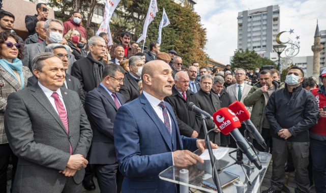 İzmir Büyükşehir Belediye Başkanı Tunç Soyer, CHP İzmir İl Örgütü tarafından düzenlenen basın açıklamasına katıldı. Açıklama sözleşmeli memurlara kadro verilmemesini ve devletin belediyelerdeki sözleşmeli memurlardan, toplu sözleşmeye dayanarak belediyelerin yaptığı ödemeleri geri istemesini (zimmet çıkarmak) protesto etmek amacıyla Konak Meydanı’nda Gazeteci Hasan Tahsin İlk Kurşun Anıtı önünde yapıldı. Açıklamaya Başkan Tunç Soyer’in yanı sıra Cumhuriyet Halk Partisi (CHP) Yerel Yönetimlerden Sorumlu Genel Başkan Yardımcısı Seyit Torun, CHP Genel Başkan Yardımcısı Veli Ağbaba, CHP İzmir İl Başkanı Deniz Yücel, CHP İzmir milletvekilleri ile ilçe belediye başkanları, Birleşik Kamu İşgörenleri Sendikaları Konfederasyonu (Birleşik Kamu-İş), Tüm Belediye ve Yerel Yönetim Hizmetleri Emekçileri Sendikası (Tüm Bel-Sen) ve Tüm Yerel Yönetim Çalışanları Sendikası’nda (Tüm Yerel-Sen) örgütlü belediye çalışanları ile yurttaşlar katıldı.