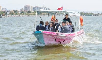 İzmir Büyükşehir Belediye Başkanı Tunç Soyer’in “dirençli kent” vizyonu kapsamında oluşturulan “Doğa Şehirde” projesi, Karşıyaka ilçesindeki Mavişehir Balıkçı Barınağı’nın çevresinde Flamingo Doğa Parkı ile başladı. İzmir Büyükşehir Belediye Başkanı Tunç Soyer, yeşil alanları suya ihtiyaç duymayan bitkilerle tasarlanan ve içinde Gediz Deltası ile ilgili bilgilendirmelerin bulunduğu Flamingo Doğa Parkı'nda, Kars programının hemen öncesinde incelemelerde bulundu. Başkan Soyer'e eşi Neptün Soyer, Karşıyaka Belediye Başkanı Cemil Tugay ile eşi Öznur Tugay, CHP İzmir Milletvekili Özcan Purçu, İzmir Büyükşehir Belediyesi Başkan Danışmanı Güven Eken, İzmir Büyükşehir Belediyesi Genel Sekreter Yardımcısı Ozan Yılmaz, İzmir Büyükşehir Belediyesi bürokratları katıldı. Başkan Soyer ve beraberindeki heyet ilk olarak Flamingo Doğa Parkı bilgilendirme noktasını gezdi. Buradan tur için hazırlanan otobüsü inceleyen Başkan Soyer, Gediz Deltası kıyılarında yapılacak gezilerde kullanılacak tekneyi de test etme imkanı buldu.