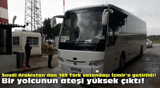 Suudi Arabistan'dan uçakla Türkiye'ye getirilen 169 Türk vatandaşı, İzmir Adnan Menderes Havalimanı'na indi. Getirilen yolculardan birinin ateşinin yüksek çıktığı ve hastaneye sevk edildiği öğrenildi.