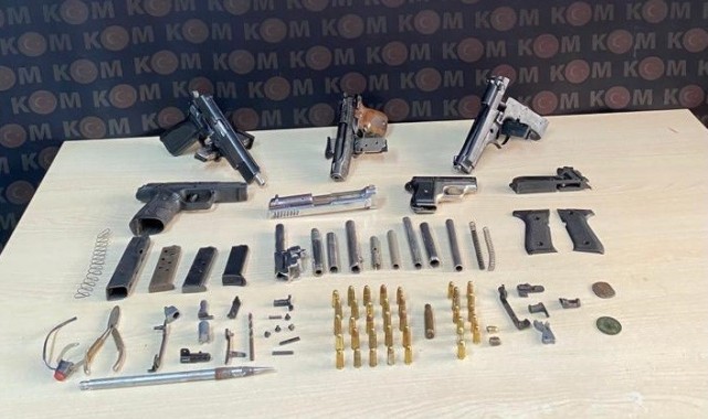Ödemiş İlçe Emniyet Müdürlüğü Kaçakçılık ve Organize Suçlarla Mücadele (KOM) Grup Amirliği ekipleri, ilçeye bağlı Umurbey Mahallesi'nde bulunan bir adreste kurusıkıdan çevirme tabanca imal edildiği bilgisi üzerine çalışma başlattı. Harekete geçen ekiplerin belirlenen adrese gerçekleştirdiği operasyonda, 5 adet kurusıkıdan çevirme tabanca, 6 adet şarjör, 9 adet işlem görmüş namlu, 2 adet kabza, 36 adet fişek, çok sayıda namlu açmak için kullanılan aparat ile 1 adet sürgü ele geçirildi.