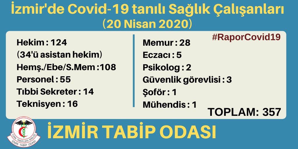 Tabip Odası kent genelinde ulaşılan verileri toplayarak sağlık kuruluşlarında görev yapan personelleri arasında koronavirüs testi pozitif çıkan kişi sayısında yeni verileri açıkladı.