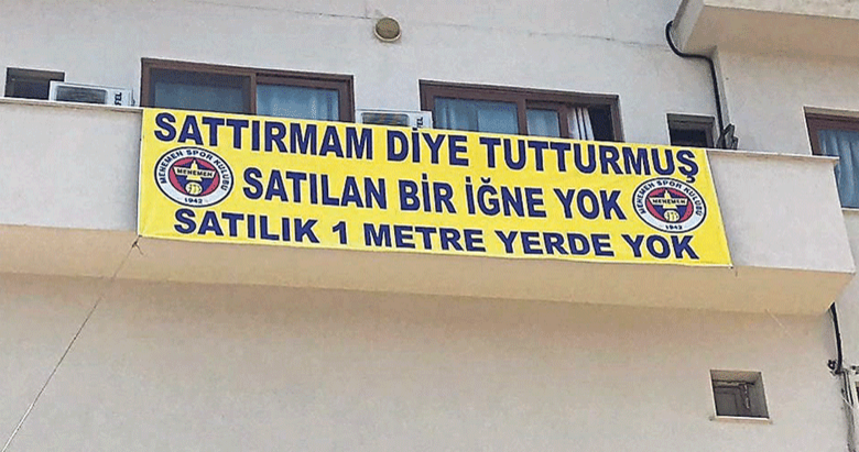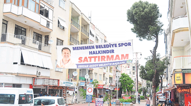 Menemen'in eski belediye başkanı ve kulüp onursal başkanı Tahir Şahin ile yeni seçilen Menemen Belediye Başkanı serdar aksoy arasındaki kriz devam ediyor. Serdar Aksoy ilçenin bir çok noktasına, "Menemen Belediyespor halkın takımıdır. Sattırmam" afişlerini astırdı. Sarı-lacivertli yönetim de kulüp binasına astığı pankartla "Sattırmam diye tutturmuş, satılan bir iğne yok, satılık 1 metre yer de yok" diye cevap verdi.