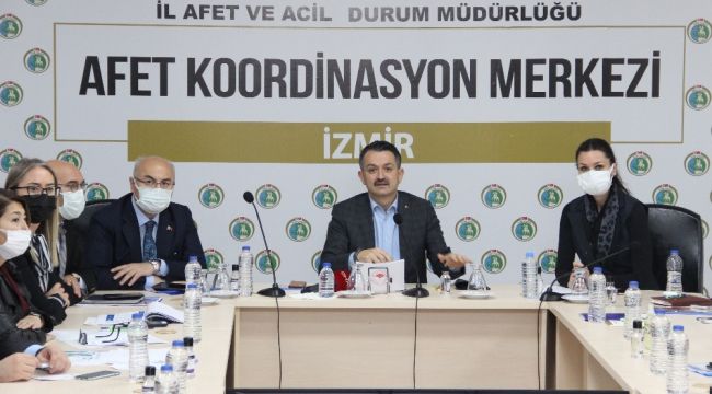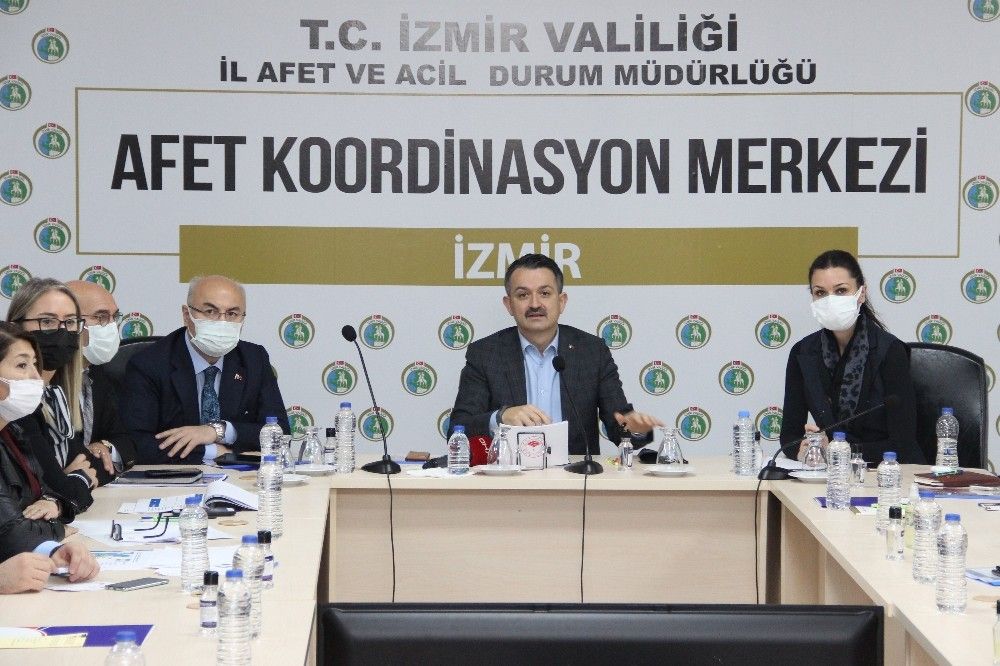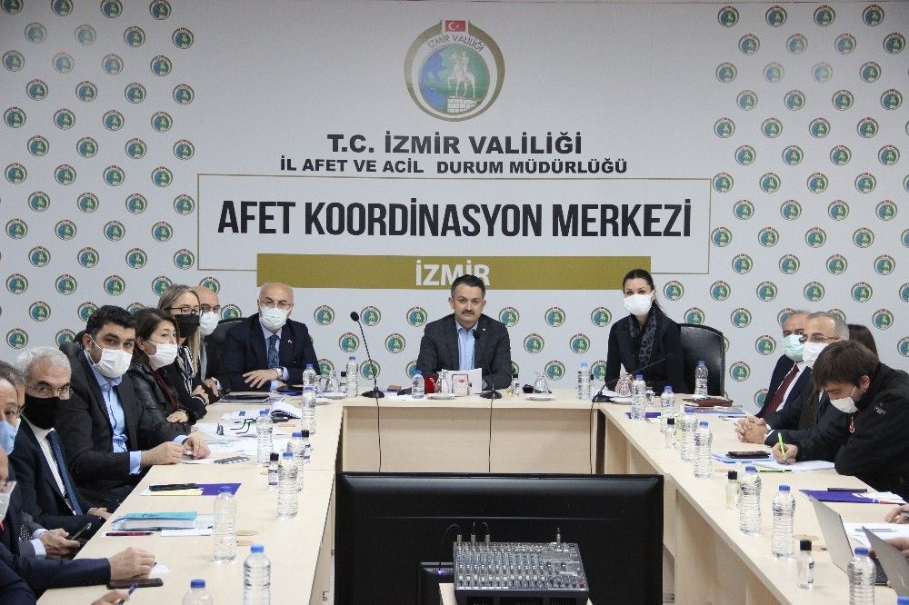 Tarım ve Orman Bakanı Bekir Pakdemirli başkanlığında, İzmir'de İl Afet ve Acil Durum Müdürlüğü Afet Koordinasyon Merkezinde koordinasyon toplantısı gerçekleştirildi. Yapılan koordinasyon toplantısının ardından açıklamalarda bulunan Bakan Pakdemirli, arama kurtarma çalışmalarının ardından binaların hasar tespitlerinin de tamamlandığını söyledi.