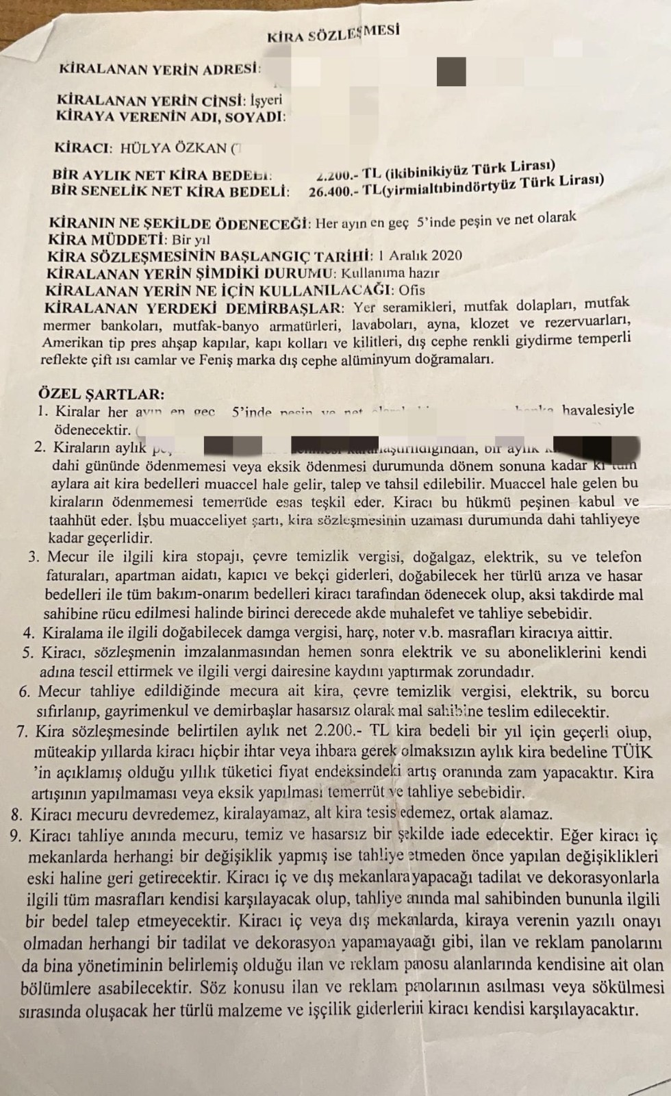 İzmir Çiğli'de kurumsal bir gayrimenkul danışmanlığının temsil ofisini işleten Hülya Özkan, 6 ay önce bir iş hanının 2. katında yan yana bulunan iki ofisi tuttu. Mülk sahibinden izin alarak ofise cam giydirme ve tabela takma işlemleri yaptıran Özkan, ofis için bazı başka masraflarda da bulundu. Ancak iddiaya göre kontrat bitimine 4 ay kala, mülk sahibinin tüm binayı tek bir şahsa kiralamayı planlaması sebebiyle Özkan ofisten çıkarılmak istendi. Hem pandemi şartları hem de kontratın bitmemesi nedeniyle ofisi boşaltmayı reddeden Özkan, mülk sahibi tarafından çeşitli baskılara maruz kaldığını öne sürdü. İddiaya göre Özkan'a yıldırma politikası uygulayan mülk sahibi, önce binadaki asansörleri devre dışı bıraktı, ardından da tabelaları ve cam giydirmelerin bazılarını söktürdü. Tek kiracısı olan binada görevlendirilen güvenlik de Özkan'ın yemek siparişlerinin dahi yukarı taşınmasına müsaade etmedi. İş hanının 17.30'da kapatılmasına karar verilmesi ise Özkan için son nokta oldu. İşlerinin 17.30'dan sonra yoğunlaştığını belirten Özkan, belirlenen saatte ofisinden çıkmayınca iş hanının kapısı üzerine kilitlendi. İzmir'de meydana gelen depremden bu yana panik atak rahatsızlığı ile mücadele eden Özkan, bir saat boyunca 5 katlı boş binada tek başına kaldı. Telefonla polis ekiplerini arayan Özkan, bir saatin sonunda polisler tarafından binadan çıkarılarak tutanak tutturdu. Özkan, mülk sahibi hakkında yasal işlem başlattı.