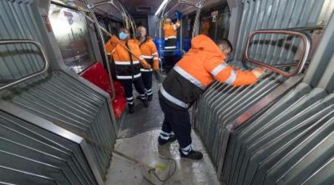 İzmir Büyükşehir Belediyesi’ne bağlı toplu ulaşım araçlarında temizlik ve dezenfeksiyon faaliyetleri kesintisiz devam ediyor. Özellikle kış aylarıyla birlikte artan grip hastalığının yayılması da temizlik çalışmalarıyla en aza indirilmeye çalışılıyor.