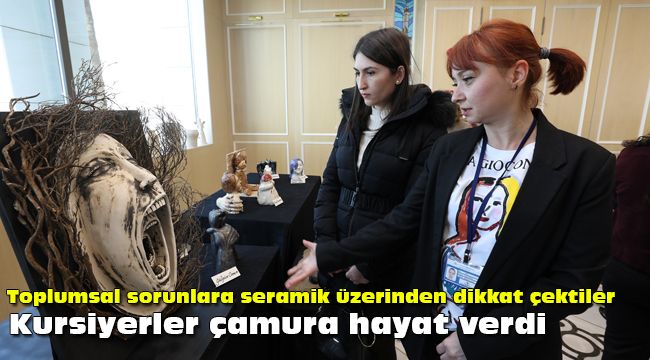 Kütahya Dumlupınar Üniversitesi Rektörü Prof. Dr. Kazım Uysal, İzmir Ticaret Odası Meclis Başkanı Selami Özpoyraz, Gaziemir Belediyesi Kültür Müdürü Deniz Dinler, belediyenin Seramik Öğretmeni Hayal Başarı ile kursiyerlerin katıldığı İzmir Ticaret Odası Sergi Salonu’ndaki açılış töreninin ardından eserler, sanatseverlerin beğenisine sunuldu. Kursiyerlerin çamura hayat vererek oluşturduğu sergide Türkiye’nin belirli dönemlerinde gündeme gelen konular üç ayrı bölümde anlatılıyor. Seramik çalışmaları, profesyonellerin oluşturduğu eserlere taş çıkartıyor.