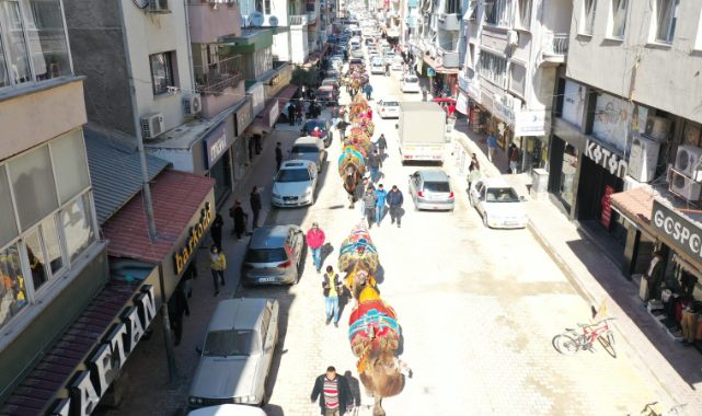Torbalı Belediyesi tarafından 1 yıl aradan sonra yarın saat 10.30’da Özbey deve güreşi Arenası’nda düzenlenecek olan 13. Geleneksel Deve Güreşi Festivali’ne katılacak develer, bugün kortej yürüyüşü yaptı. Festival öncesi toplanan develer, ilçenin en işlek caddelerinde sahipleri ile birlikte yürüdü. torbalı belediyesi ekipleri tarafından açılan müzikler eşliğinde yürüyen develere ilçe sakinleri de yoğun ilgi gösterdi. Yürüyüşe katılan develeri kameralarına kaydeden Torbalılılar, ilçe sokaklarında bu tarz renkli etkinlikleri özlediklerini kaydetti.