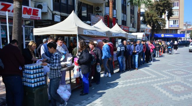 Torbalı Belediyesi, İdlib’de şehit düşen 36 vatan evladı için bugün Torbalı Belediyesi önünde tavuklu pilav ve lokma dağıttı.