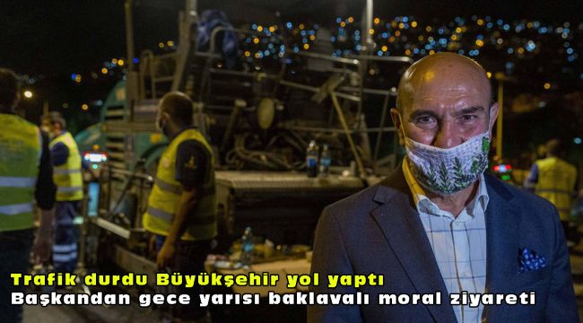 İzmir Büyükşehir Belediye Başkanı Tunç Soyer, gece 23.00’te asfalt atan işçileri ziyaret edip 1 Mayıs İşçi Bayram’nı kutladı, onlara baklava ikram etti. Sokağa çıkma kısıtlamasını değerlendiren ekipler normalde tamamen kapatılamayan ana arterleri asfaltladı.