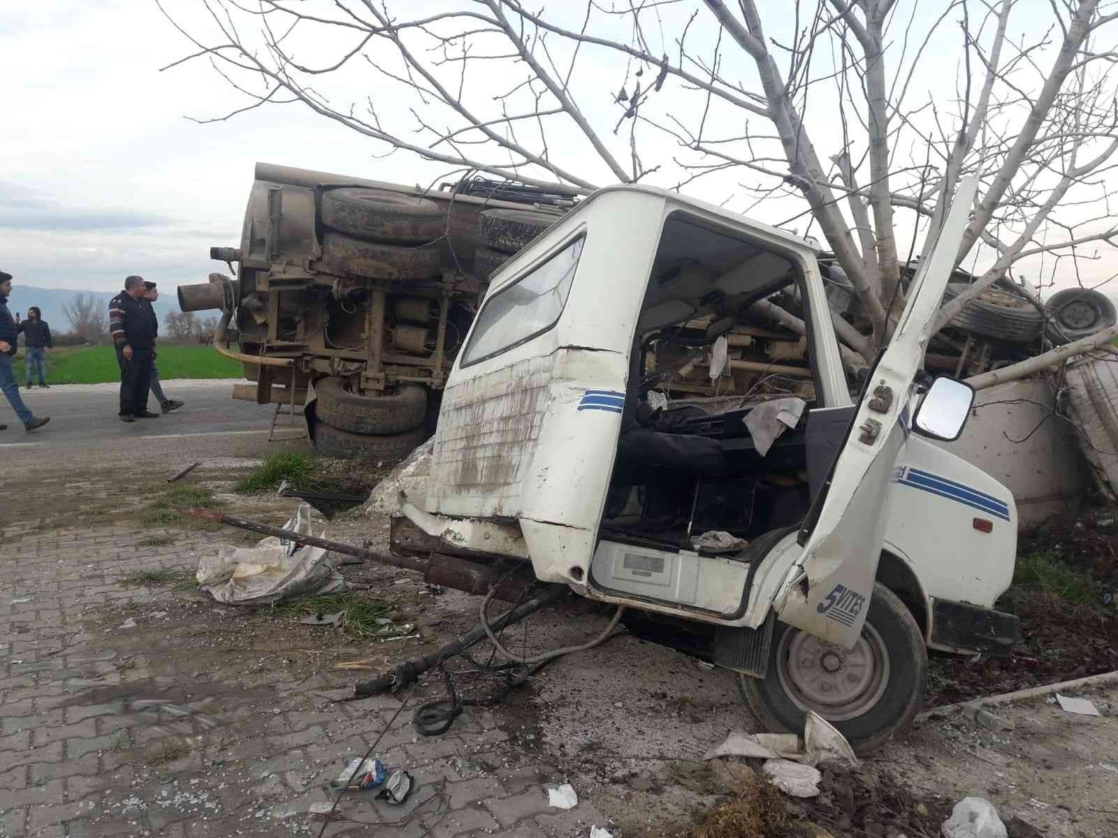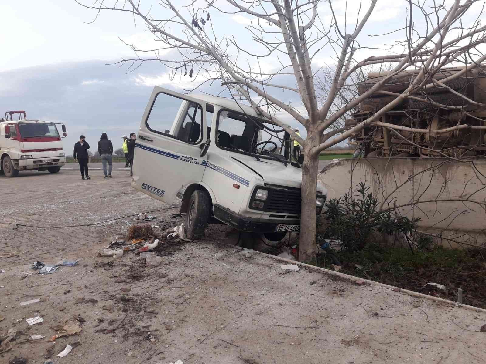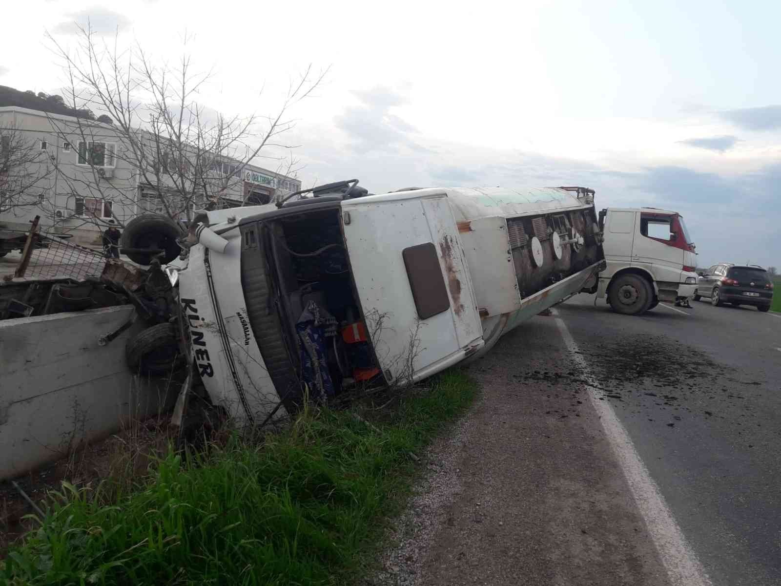 Olay, dün Tire-Torbalı yolunda meydana geldi. Tire'den Torbalı istikametine seyir halinde olan Hüseyin Tahsin H. yönetimindeki 35 AD 4840 plakalı kamyonet, yolun solunda bulunan bir işletmeye girmek istedi. Bu esnada karşı yönden gelen Murat Ç. yönetimindeki sıvı gübre yüklü tanker, kamyonete çarptı. Çarpışmanın etkisiyle ikiye bölünen kamyonet, yol kenarındaki duvara çarparken, tanker ise devrildi. Kaza sonucu, kamyonette bulunan Hüseyin Tahsin H. ve Fikriye H. yaralandı. Yaralılar, olay yerine gelen ambulansla Tire Devlet Hastanesine sevk edildi. Öte yandan kaza anı, işyerinin güvenlik kamerası tarafından saniye saniye kaydedildi.