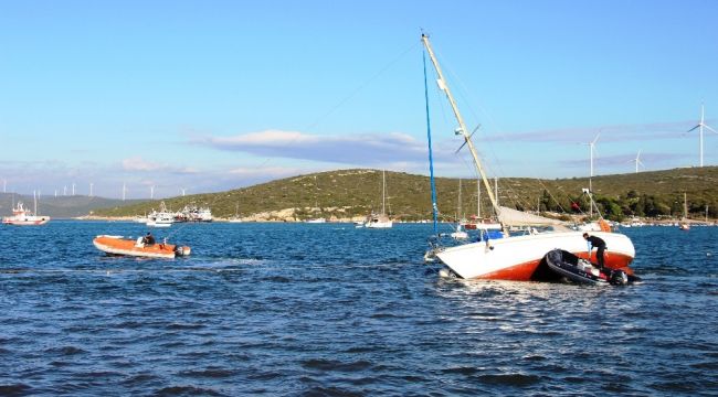 İzmir'de yaşanan 6.6 şiddetindeki depremin ardından Seferihisar ilçesinde denizde oluşan tsunami nedeniyle karaya oturan, yan yatan ve batan tekneler tek tek kurtarılıyor.