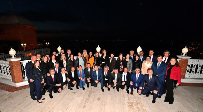 Tarihi Asansörde gerçekleşen kaynaşma yemeğine Bayraklı Belediye Başkanı Serdar Sandal, Balçova Belediye Başkanı Fatma Çalkaya, Beydağ Belediye Başkanı Feridun Yılmazlar, Bornova Belediye Başkanı Mustafa İduğ, Dikili Belediye Başkanı Adil Kırgöz, Karşıyaka Belediye Başkanı Cemil Tugay, Seferihisar Belediye Başkanı İsmail Yetişkin, Konak Belediye Başkanı Abdül Batur, Foça Belediye Başkanı Fatih Gürbüz, Karabağlar Belediye Başkanı Muhittin Selvitopu, Çeşme Belediye Başkanı Ekrem Oran, Karaburun Belediye Başkanı İlkay Girgin Erdoğan, Menderes Belediye Başkanı Mustafa Kayalar, Gaziemir Belediye Başkanı Halil Arda, Ödemiş Belediye Başkanı Mehmet Eriş, Narlıdere Belediye Başkanı Ali Engin, Urla Belediye Başkanı İbrahim Oğuz, Tire Belediye Başkanı Atakan Duran, Torbalı Belediye Başkanı İsmail Uygur, Çiğli Belediye Başkanı Utku Gümrükçü, Ödemiş Be lediye Başkanı Mehmet Eriş ve Buca Belediye Başkanı Erhan Kılıç ile başkan eşleri katıldı.