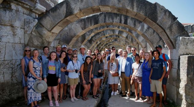 ABD’li öğrencilerle fotoğraf çektirdi