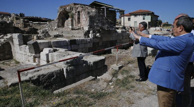 Dünyanın en zengin Yunanca duvar yazısı (grafito) koleksiyonunu da ev sahipliği yapan Agora kazı alanı, Konak’taki en önemli tarihi zenginliklerinin başında geliyor. Agora Kazıları Başkanı Doç.Dr. Akın Ersoy’la birlikte kazı alanını gezen Batur, Helenistik ve Roma Dönemleri’ndeki günlük yaşama ait kesitlerin yer aldığı grafitoların (duvar yazıları) bulunduğu galeriyi yakından incelerken, Roma Hamamı, Mozaikli Yapı ve Kent Meclisi’nin yanı sıra, kent merkezinden agoraya girişi sağlayan Bazilika Kuzeybatı Kapı ile limandan agoraya girişi sağlayan Faustina Caddesi hakkında da bilgi aldı.