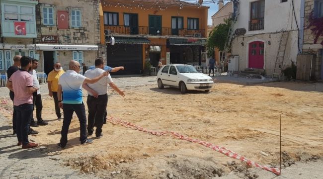 Ünlü tatil merkezi Çeşme ilçesindeki Alaçatı'da, restoranların yoğun olduğu meydanın adeta şantiyeye dönmesi, korona virüsü nedeniyle turizm sezonuna yeni başlayan esnafın tepkisini çekti.