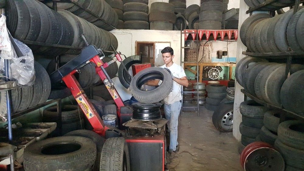 Lastik tamircisi olarak çalışıyor