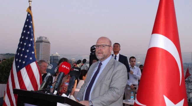 ABD Ankara Büyükelçiliği Maslahatgüzarı Jeffrey M. Hovenier ise konuşmasında şunları ifade etti:"Türkiye'nin en önemli şehirlerinden biri İzmir'de iş birliğini devam ettirmek isteriz. Türk ABD ilişkileri özeldir. İzmir'de önemli rol oynuyor. Tarihe bakıldığında ilk ticari heyeti 1811 yılında İzmir'de başlamış. Diplomatik ilişkiler ise bundan 20 yıl sonra başlamış, 1927'de resmi bir hal almıştı. 1927 yılından bu yana bizler her yıl sizlerle bağımsızlık günümüzü kutluyoruz. ABD'nin önemli ofisinin bu binada görev yapacak olması önemli. 4 Temmuz bizim için çok özeldir. Sizlerle birlikte olmaktan çok mutluyuz.