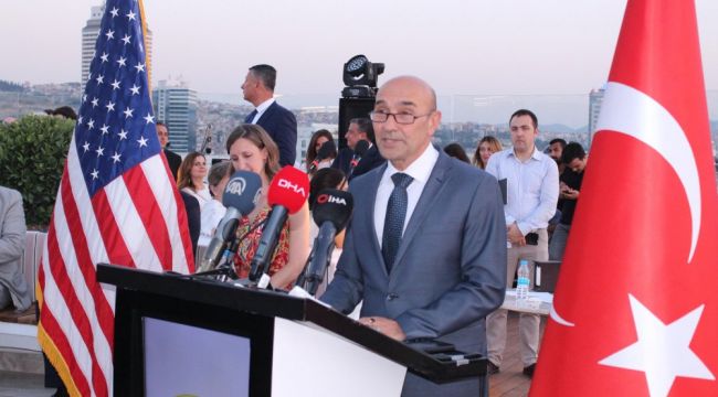 İzmir Büyükşehir Belediye Başkanı CHP'li Tunç Soyer de, konuşmasında günün aynı zamanda yeni bir başlangıca işaret ettiğini belirterek, "İzmir ile ABD'deki diğer şehirler arasındaki bağları güçlendirmek için çaba sarf edeceğiz. ABD Ticaret Müsteşarlığı, ABD Ticaret Müsteşarlığı'nın ABD'ye açılan ilk kapısı olacak. Bu binada olmalarından memnuniyet duyuyorum. Onların bağımsızlık gününü bir kez daha tebrik etmeden geçemem. Bugün sadece ABD açısından değil bütün dünyadaki sivil haklar ve demokrasi açısından önemli. İnsan hakları evrensel beyannamesine ilham kaynağı olmuştur. Kuşkusuz bu iş birliği kapsamında turizm ve akıllı kentlerin geliştirilmesi hususunda akıllı şehirler konusunda deneyimli ABD'li kentlerle iş birliğinde olmayı istiyoruz" diye konuştu.İLK TİCARİ HEYET İZMİR'E
