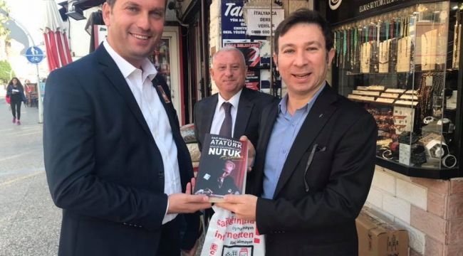 Cumhuriyet Halk Partisi Foça Belediye Başkan Aday Adayı Gürol Türkmentepe Gazi Mustafa Kemal Atatürk'ün vefatının 80. yıl dönümünde Foça esnafına ve halka Nutuk hediye etti.