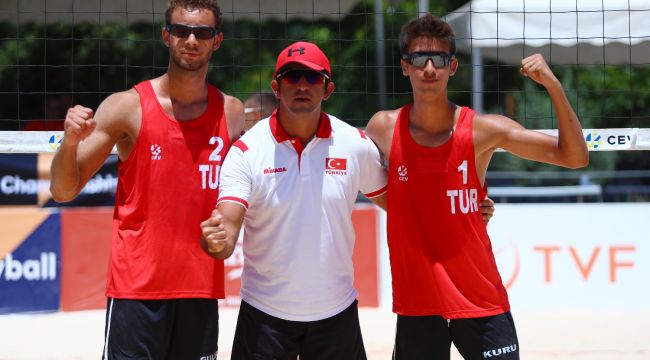 İzmir Büyükşehir Belediyesi’nin ev sahipliğinde, Türkiye Voleybol Federasyonu, İzmir Gençlik ve Spor İl Müdürlüğü, SWS Sports ve Beach-it tarafından Axa Sigorta’nın sponsorluğunda düzenlenen U20 Plaj Voleybolu Avrupa Şampiyonası devam ediyor. İnciraltı’ndaki Plaj Voleybolu Merkezi’nde 11 Temmuz Pazar gününe kadar sürecek şampiyonanın ikinci gününde erkeklerde Batuhan Kuru – Necmi Ayberk Güllük ikilisi, Danimarkalı Jacop Petersen – Nikola Razdorov’u 2-1 yenerek gruptan çıkmayı garantiledi. Sporcularımız, şampiyonanın ilk gününde de Yunanistan’dan Aristeidis Chandrinos - Triantafyllos Restemis’i 2-0 mağlup etmişti.