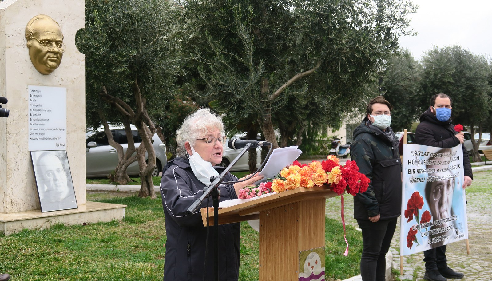Uğur Mumcu Parkı’nda sokağa çıkma kısıtlaması nedeni ile 25 Ocak Pazartesi günü yapılan anma törenine; foça belediyesi Başkan Vekili Semih Uzun, Belediye Meclis Üyeleri, Atatürkçü Düşünce Derneği Foça Şube Başkanı Şeniz Ararat, Foça Kent Konseyi Başkanı Özlem Temizel, Cumhuriyet Halk Partisi Foça İlçe Başkanı Ayla Yılmaz ve vatandaşlar katıldı. Saygı duruşu sonrasında Atatürkçü Düşünce Derneği Foça Şube Başkanı Şeniz Ararat, konuşma yaptı.