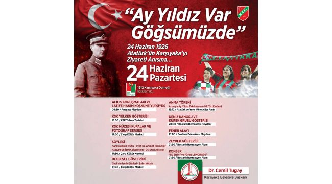 Tüm karşıyaka sevdalılarını 24 Haziran’daki etkinliklere davet eden Karşıyaka Belediye Başkanı Dr. Cemil Tugay “Karşıyaka Spor Kulübü, Atatürk tarafından arması ay-yıldız ile onurlandırılan Türkiye’deki ilk ve tek spor kulübüdür. Atamızın KSK’yi ziyaret ettiği ve bu onuru verdiği 24 Haziran tarihi de bizim gurur günümüzdür. Bu anlamlı tarihin yıl dönümünü bize yakışacak nitelikli etkinliklerle, her zamanki coşku ve heyecanımızla kutlayacağız. “Karşıyaka Spor Kulübü’nde karşı karşıya bulunduğum gençlik iftihara şayandır. Bu gençlik muvacehesinde istikbâlin kuvvetli saadeti ne bariz görülmektedir...” diyen Atamızı bir kez daha sonsuz minnet ve şükranla anacağız. Herkesi bu heyecan ve gururu paylaşmaya çağırıyoruz” dedi.