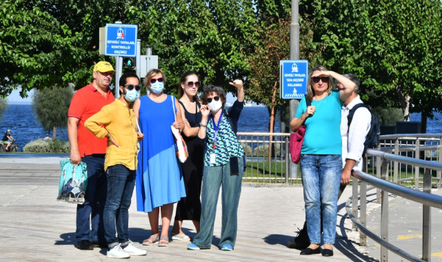 Konak Pier'den başlayan merkez turu sahilden başladı. İzmir Büyükşehir Belediyesi Tarihsel Çevre ve Kültür Varlıkları Şube Müdürlüğü'nden Çağıl Ergin ile Büyükşehir Turizm Şube Müdürlüğü'nden Gülriz Yılmaz'ın eşlik ettiği heyet Saat