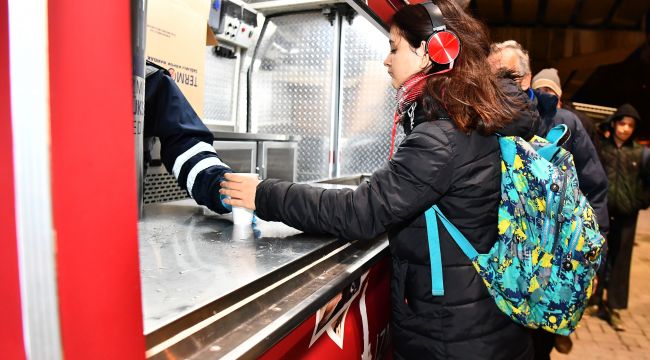 İzmir Büyükşehir Belediyesi’nin sabahları dağıtılan ücretsiz çorba servisi büyük ilgi görüyor.