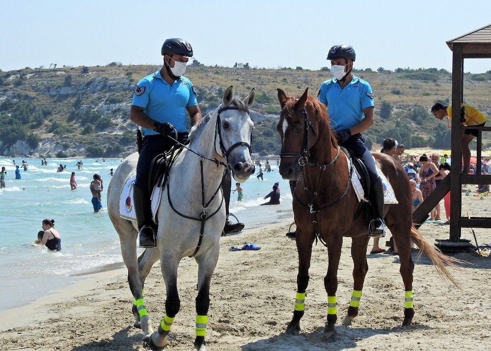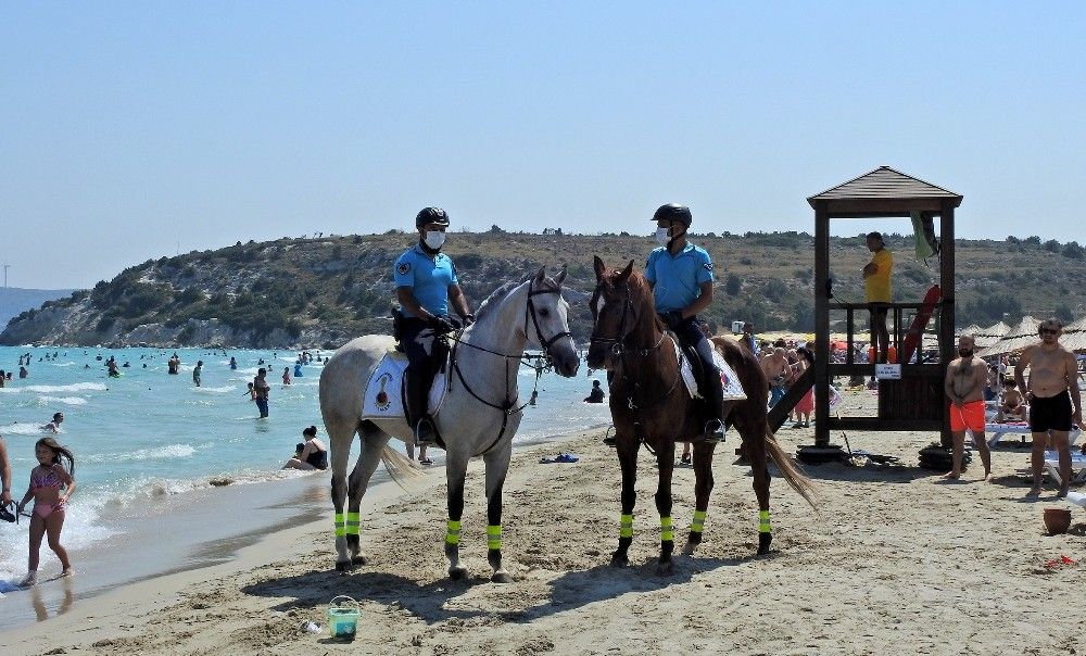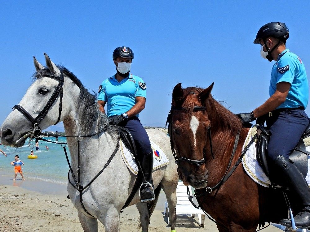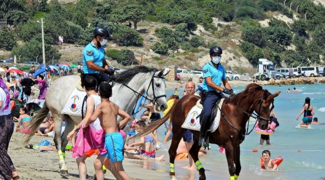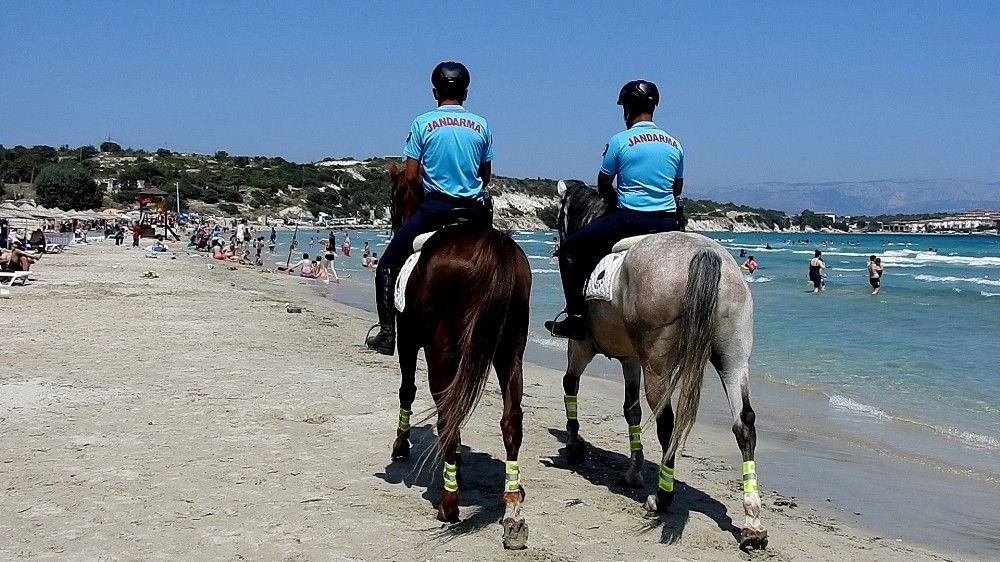 Ünlü tatil merkezi Çeşme'de jandarma sorumluluk bölgelerindeki plajlarda Atlı Jandarma Timi göreve başladı.