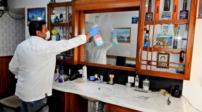 Çeşme'de uzun yıllardır berberlik yapan Mümin Avcı da, iş yerinde temizlik çalışmalarının startını verdi. Kullandığı aletleri dezenfekte eden Avcı, dükkanının 22 Mart'tan beri kapalı olduğunu belirtti. Avcı, "Çok zor günler geçirdik. Dükkanlarımız kapalı olduğu için maddi olarak çok zorlandık. Dükkanlarımızı 11 Mayıs tarihinden itibaren açabileceğimizi öğrenince çok sevindim. Hemen temizliğe başladım. Tıraş yaparken kullandığım bütün aletlerimi, taraklarımı dezenfekte ediyorum. Belediyemiz de cuma günü dükkanımı dezenfekte edecek. Pazartesi gününden itibaren tertemiz bir dükkanda, bakanlığımızın açıkladığı genelgeye tam olarak uyarak, hijyenik şartlarda hizmet vermeye başlayacağız" diye konuştu.