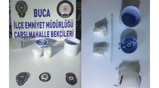 Olay dün gece saatlerinde Ahmet Piriştina Bulvarı üzerinde meydana geldi. İddiaya göre Buca İlçe Emniyet Müdürlüğüne bağlı bekçi ekipleri devriye attığı sırada yolda elinde siyah poşetle gezen bir kişiyi şüphe üzerine durdurdu. Yapılan kimlik tespitinde isminin A.A.B. (20) olduğu ve çok sayıda suç kaydı olduğu öğrenilen kişinin elindeki poşet içerisinde bulunan, damacana pompasının iç kısmına gizlenmiş bir şekilde 110 gram metamfetamin maddesi ele geçirildi. Şüphelinin uyuşturucu maddeyi gizleme yöntemi bekçileri bile şaşırttı.