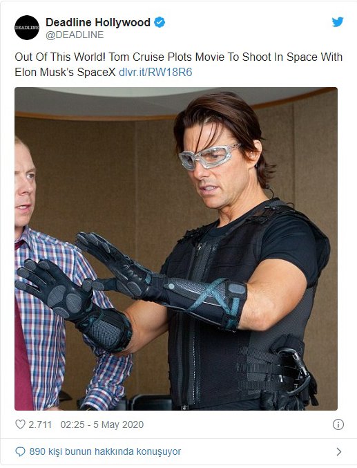 Deadline dergisinin yaptığı habere göre Tom Cruise, Elon Musk’ın kurduğu SpaceX programı yardımıyla uzayda aksiyon filmi çekmeyi planlıyor.