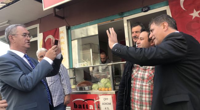 Yerel seçimler yaklaşırken ve adaylar kampanyalarını tüm hızıyla sürdürürken çalışmalar sırasında objektiflere ilginç görüntüler de yansıyor. Bu görüntülerden birisi de Karşıyaka'da yaşandı. Bir vatandaş, İmbatlı Mahallesi'nde esnaf ziyareti gerçekleştiren CHP Karşıyaka Belediye Başkan Adayı Dr. Cemil Tugay ve İzmir Milletvekili Atila Sertel'in yanına gelerek, Menderes'te partileri için ter döken Belediye Başkan Adayı Mustafa Kayalar'a destek mesajı göndermelerini istedi.