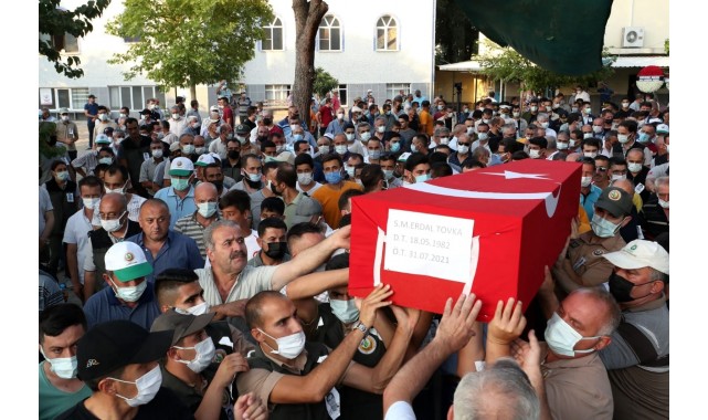 Antalya'nın Manavgat ilçesindeki orman yangınını söndürme çalışmaları esnasında şehit düşen orman işçisi Erdal Tovka (39) için İzmir'de cenaze töreni düzenlendi. Cenaze töreninde Tovka'nın yakınları gözyaşı dökerken, şehidin Manavgat'a gitmek üzere hazırlanırken ailesinden helallik istediği ve "Geri gelemeyebilirim" dediği öğrenildi.