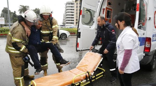 İZMİR'de Konak Belediyesi'nin Basmane Meydanı'ndaki ek hizmet binasında yangın tatbikatı yapıldı.