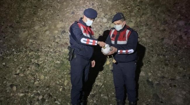 Urla'da jandarma ekipleri görev esnasında yol kenarında uçamayan, yaralı martıya şefkatli ellerini uzattı.
