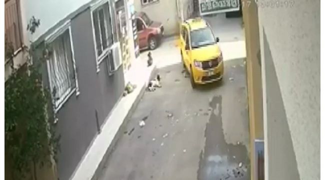 Öte yandan yaşanan olay sokakta bulunan bir güvenlik kamerası tarafından görüntülendi. Görüntülerde ticari taksinin sokağı döndükten sonra köpeği ezdiği, taksinin altında kalan köpeğin acı içinde kıvranması, diğer köpeklerin taksiye havlayarak tepki göstermeleri ve aracın sokaktan ilerlediği görüldü.