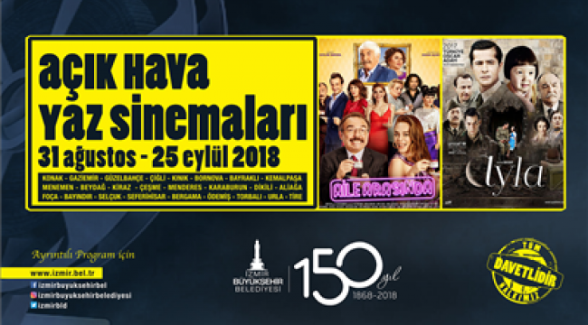 Bir zamanların vazgeçilmez eğlencelerinden biri olan açıkhava yaz sinemalarını İzmir'de yaşatmaya çalışan İzmir Büyükşehir Belediyesi, sinemaseverlere bir kez daha bu nostalji keyfini yaşatıyor. Yaz başından itibaren Tarihi Havagazı Fabrikası, Kültürpark ve Ahmed Adnan Saygun Sanat Merkezi bahçesinde sürdürülen gösterimler, 31 Ağustos- 25 Eylül 2018 tarihleri arasında 25 ilçenin akşamlarını da renklendirecek. İlçelerdeki “Açık Hava Yaz Sinemaları” kapsamında, Türk sinemasının son yıllardaki iki başarılı yapımı, "Ayla" ve "Aile Arasında" gösterilecek.