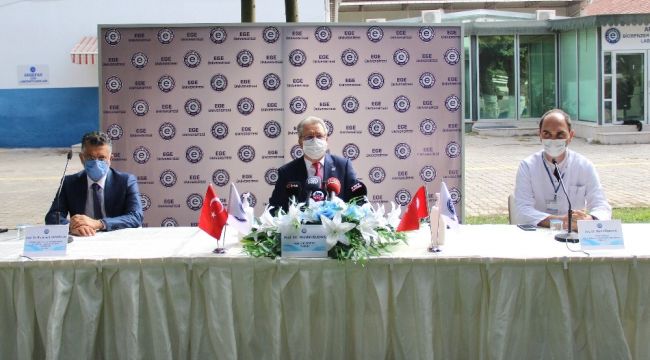 Ege Üniversitesi İlaç Geliştirme ve Farmakokinetik Araştırma ve Uygulama Merkezi bahçesinde, düzenlenen toplantıda konuşan Rektör Necdet Budak, "Bizler göreve geldiğimiz ilk andan itibaren araştırma üniversitesi hedefimize ulaşmak için yüksek motivasyonla çalışmalarımızı sürdürüyoruz. Üniversitemizde oluşturduğumuz bilim iklimi sayesinde ülkemizin öncelikli alanlarında Ar-Ge faaliyetlerini sürdürüyor; ürettiğimiz bilgiyi, ürüne dönüştürerek toplumun faydasına sunmaya öncelik veriyoruz. Ege Üniversitesi olarak sürdürdüğümüz Ar-Ge faaliyetlerinin meyvelerini aldık ve 2018-2019 döneminde Tübitak'a en çok proje üreten birinci üniversite olduk. Bizler, bu başarının haklı gururunu yaşıyoruz. Dünya Sağlık Örgütü, Covid-19 salgınını henüz pandemi ilan etmemişken Ege Üniversitesi olarak salgınla mücadelede stratejilerimizi belirleyerek eylem planlarımızı oluşturduk. Salgınla mücadelede köklü çözüm üretmek için Multidisipliner Aşı Araştırma ve Geliştirme Çalışma Grubu çatısı altında çalışmalarımıza başladık" dedi.