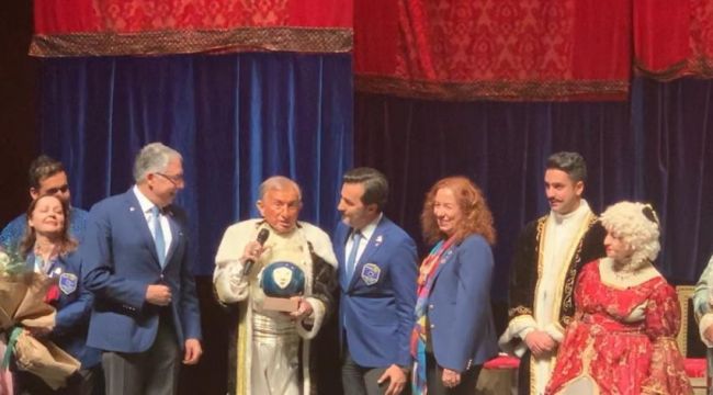 Usta sanatçıya ödülünü “Kibarlık Budalası” oyunu sonrası Federasyon Başkanı Fatih Akçiçek ve Gökdere Rotary Kulübü Başkanı Hakan Turhan birlikte takdim etti.