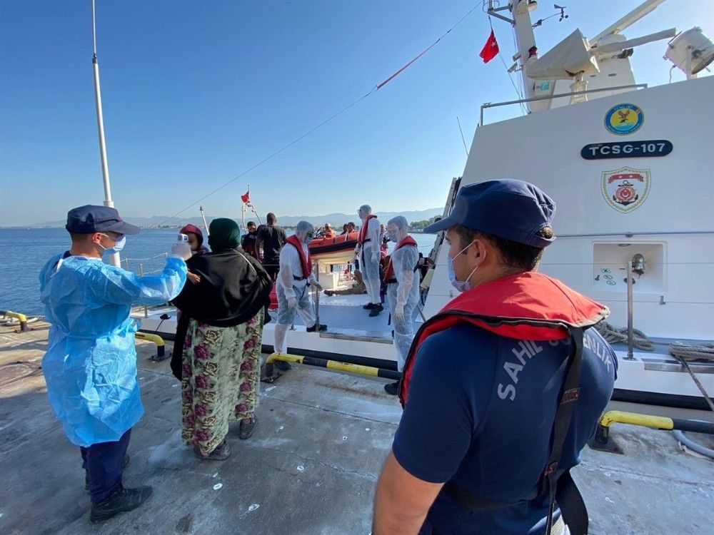 Kurtarılan düzensiz göçmenler işlemlerinin ardından İzmir İl Göç İdaresi Müdürlüğüne teslim edildi.