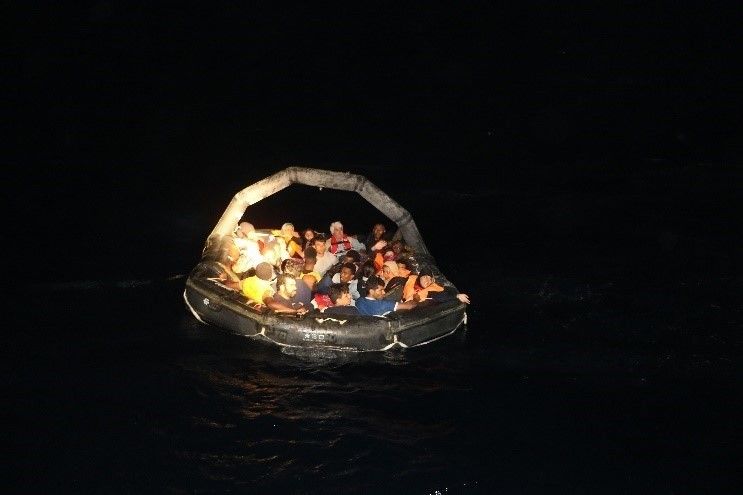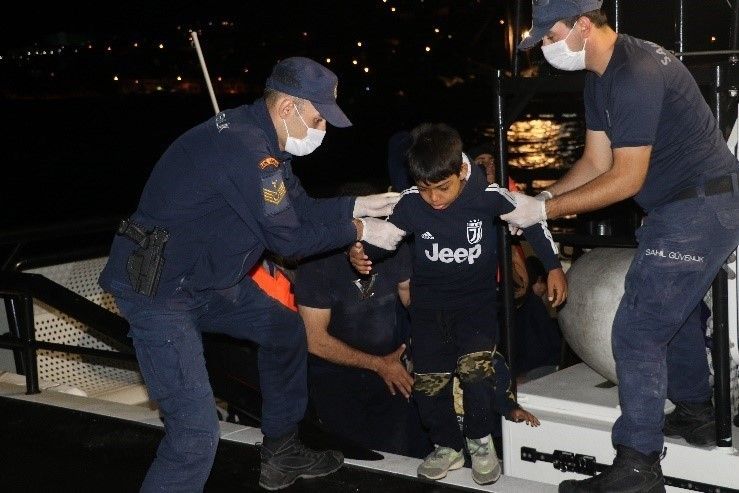 Aslan Burnu açıklarında önceki gün öğle saatlerinde Sahil Güvenlik Mobil Radarı tarafından lastik bot ve can salı içerisinde bir grup düzensiz göçmen olduğu bilgisi üzerine bölgeye yönlendirilen Sahil Güvenlik botu, yine Yunanistan unsurlarınca Türk karasularına geri itilerek sürüklenmeye bırakılan ve adeta ölüme terk edilen lastik bot ve can salı içerisindeki 81 düzensiz göçmeni kurtardı.
