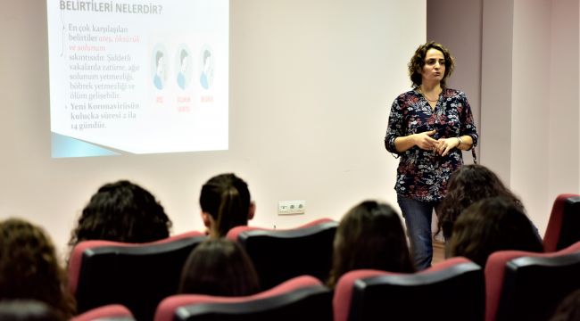 Yurt Müdürü Hemşire Dilek Çimen tarafından yapılan sunumda corona virüsünün insandan insana öksürük, aksırık, öpüşme ve el sıkışma yoluyla bulaştığı belirtildi. Hastalıktan korunmak için alınması gereken tedbirleri de anlatan Çimen, özellikle el hijyeninin çok önemli olduğu söyledi. Ellerini sık sık yıkamaları ve kalabalık ortamlara girmemeleri konusunda öğrencileri uyardı.