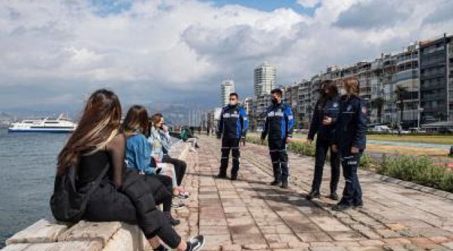 Zabıta Amiri Vedat Ayyıldız, İzmir Büyükşehir Belediyesi Zabıta Dairesi Başkanlığı'nın yetkili olduğu sahil, cadde, meydan, bulvarlarda sosyal mesafenin korunması, maske takılması, hijyen kuralları ile ilgili çalışmaların sürekli yapıldığını ancak kontrollü normalleşmeyle birlikte bu denetimlerin artırıldığını söyledi. Zabıta Dairesi Başkanlığı'na bağlı Denetim Şube Müdürlüğü ekiplerinin sokaklarda sosyal mesafeye uyulması konusunda anonslar yaptığını belirten Vedat Ayyıldız, Çevre İmar Şube Müdürlüğü ekiplerinin ise otogar ve alışveriş merkezlerinde sosyal mesafenin korunması için çalışma yürüttüklerini ifade etti. İzmir'de yaşayan yurttaşların, kurallara karşı duyarlı olduğunu vurgulayan Ayyıldız, “Kurallara uyan ve bize yardımcı olan yurttaşlara teşekkür ediyoruz” dedi.